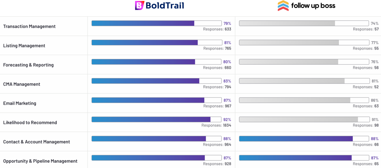 BoldTrail Outperforms in every category. You, and your business, deserve the #1-rated Real Estate CRM